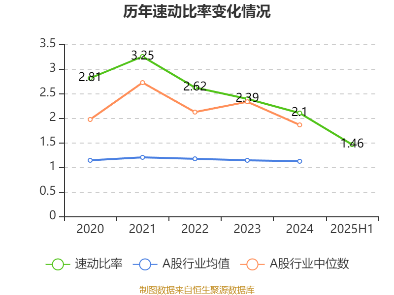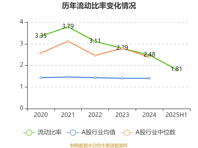 2025年上半年,公司流动比率为1.81,速动比率为1.46。