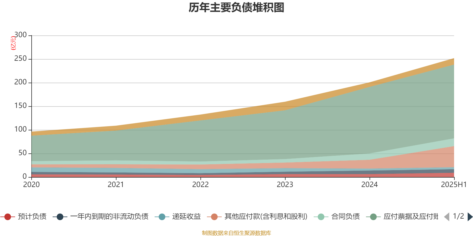 负债重大变化方面,截至2025年上半年,公司其他应付款(含利息和股利)较上期末增加139.21%,占公司总资产比重上升3.58个百分点;应付票据及应付账款较上期末增加10.71%,占公司总资产比重上升0.81个百分点;合同负债较上期末增加24.29%,占公司总资产比重上升0.34个百分点;预计负债较上期末增加44.87%,占公司总资产比重上升0.34个百分点。