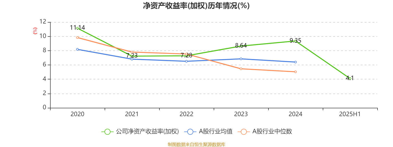 2025年上半年,公司平均净资产收益率为4.1%,较上年同期上升0.17个百分点。