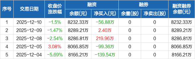 南新制药:融资净偿还56.88万元,融资余额8232.33万元(12-10)