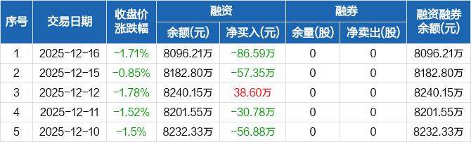 南新制药:融资净偿还86.59万元,融资余额8096.21万元(12-16)