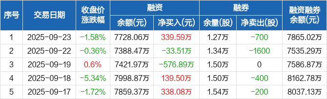 云路股份:融资净买入339.59万元,融资余额7728.06万元(09-23)