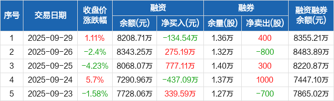 云路股份:融资净偿还134.54万元,融资余额8208.71万元(09-29)