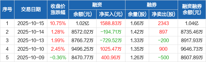 云路股份:融资净买入1588.83万元,融资余额1.02亿元(10-15)