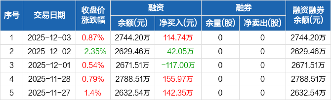 仁度生物:融资净买入114.74万元,融资余额2744.2万元(12-03)