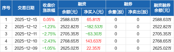 仁度生物:融资净买入65.81万元,融资余额2588.63万元(12-15)