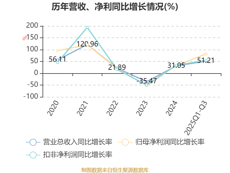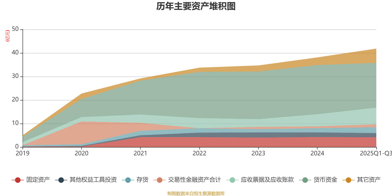 资产重大变化方面,截至2025年三季度末,公司货币资金较上年末减少8.93%,占公司总资产比重下降9.37个百分点;应收票据及应收账款较上年末增加37.54%,占公司总资产比重上升3.42个百分点;其他非流动资产较上年末增加137.76%,占公司总资产比重上升2.3个百分点;其他流动资产较上年末增加475.08%,占公司总资产比重上升2.17个百分点。