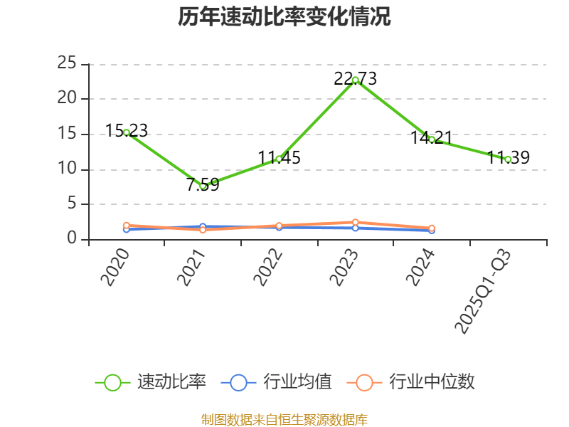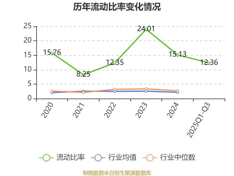 2025年前三季度,公司流动比率为12.36,速动比率为11.39。