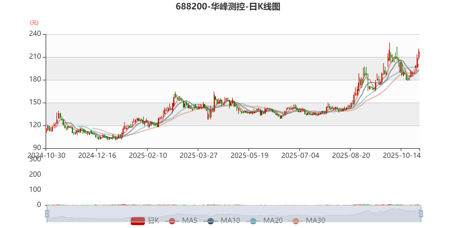 以10月29日收盘价计算,华峰测控目前市盈率(TTM)约为57.92倍,市净率(LF)约7.58倍,市销率(TTM)约24.04倍。