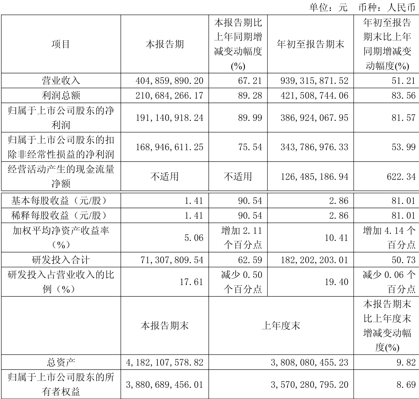中证智能财讯华峰测控(688200)10月30日披露2025年第三季度报告。前三季度公司实现营业总收入9.39亿元,同比增长51.21%;归母净利润3.87亿元,同比增长81.57%;扣非净利润3.44亿元,同比增长53.99%;经营活动产生的现金流量净额为1.26亿元,同比增长622.34%;报告期内,华峰测控基本每股收益为2.86元,加权平均净资产收益率为10.41%。