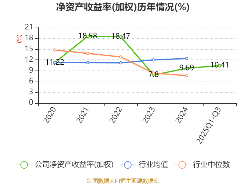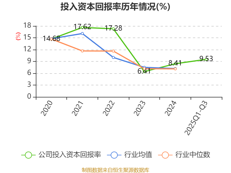 盈利能力方面, 2025年前三季度公司加权平均净资产收益率为10.41%,同比上升4.14个百分点。公司2025年前三季度投入资本回报率为9.53%,较上年同期上升4.22个百分点。