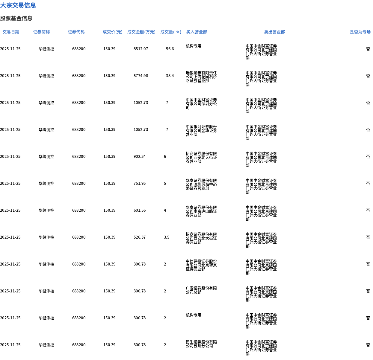 华峰测控今日大宗交易折价成交135.5万股,成交额2.04亿元