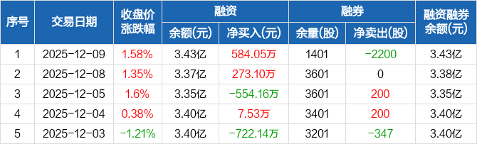 美迪西:融资净买入584.05万元,融资余额3.43亿元(12-09)