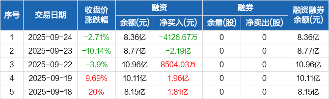 德科立:融资净偿还4126.67万元,融资余额8.36亿元(09-24)