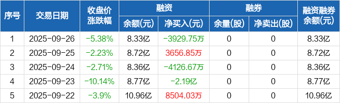 德科立:融资净偿还3929.75万元,融资余额8.33亿元(09-26)