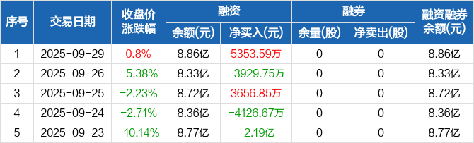 德科立:融资净买入5353.59万元,融资余额8.86亿元(09-29)