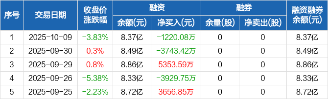 德科立:融资净偿还1220.08万元,融资余额8.37亿元(10-09)