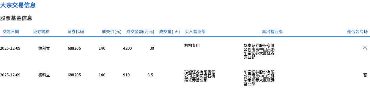 德科立今日大宗交易折价成交36.5万股,成交额5110万元