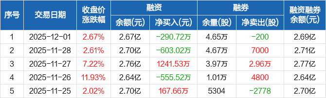 英集芯:融资净偿还290.72万元,融资余额2.67亿元(12-01)
