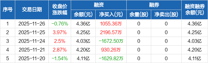 统联精密:融资净买入1055.36万元,融资余额4.36亿元(11-26)