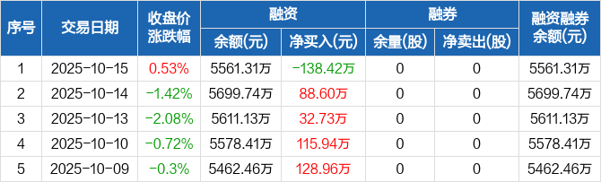 中科微至:融资净偿还138.42万元,融资余额5561.31万元(10-15)