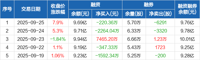思特威:融资净偿还220.36万元,融资余额9.69亿元(09-25)