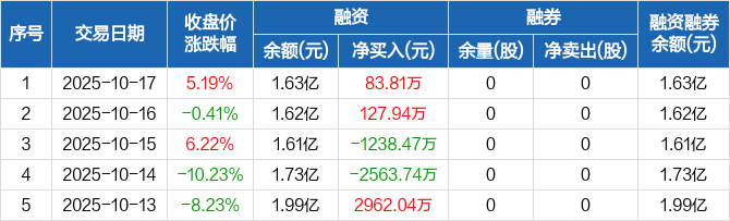 瑞晟智能:融资净买入83.81万元,融资余额1.63亿元(10-17)