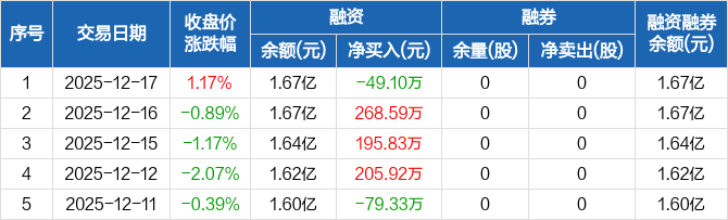 瑞晟智能:融资净偿还49.1万元,融资余额1.67亿元(12-17)