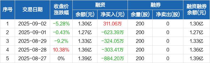 气派科技:融资净买入311.06万元,融资余额1.3亿元(09-02)