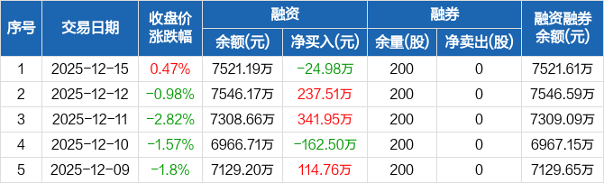 气派科技:融资净偿还24.98万元,融资余额7521.19万元(12-15)