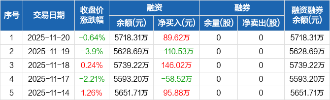 睿昂基因:融资净买入89.62万元,融资余额5718.31万元(11-20)