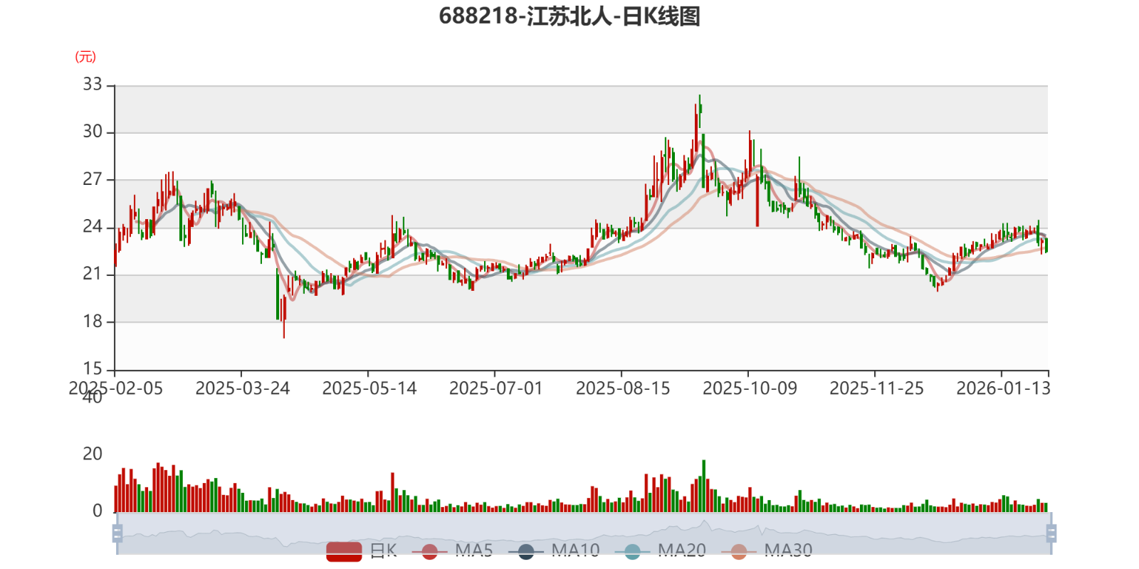 中证智能财讯江苏北人(688218)1月28日晚间披露2025年度业绩预告,预计2025年归母净利润亏损7813.74万元,上年同期盈利4519.84万元;扣非净利润亏损7835.71万元,上年同期盈利3932.91万元。以1月28日收盘价计算,江苏北人目前市盈率(TTM)约为-34.14倍,市净率(LF)约3倍,市销率(TTM)约3.85倍。