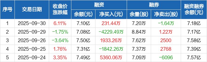 翱捷科技:融资净买入231.44万元,融资余额7.1亿元(09-30)