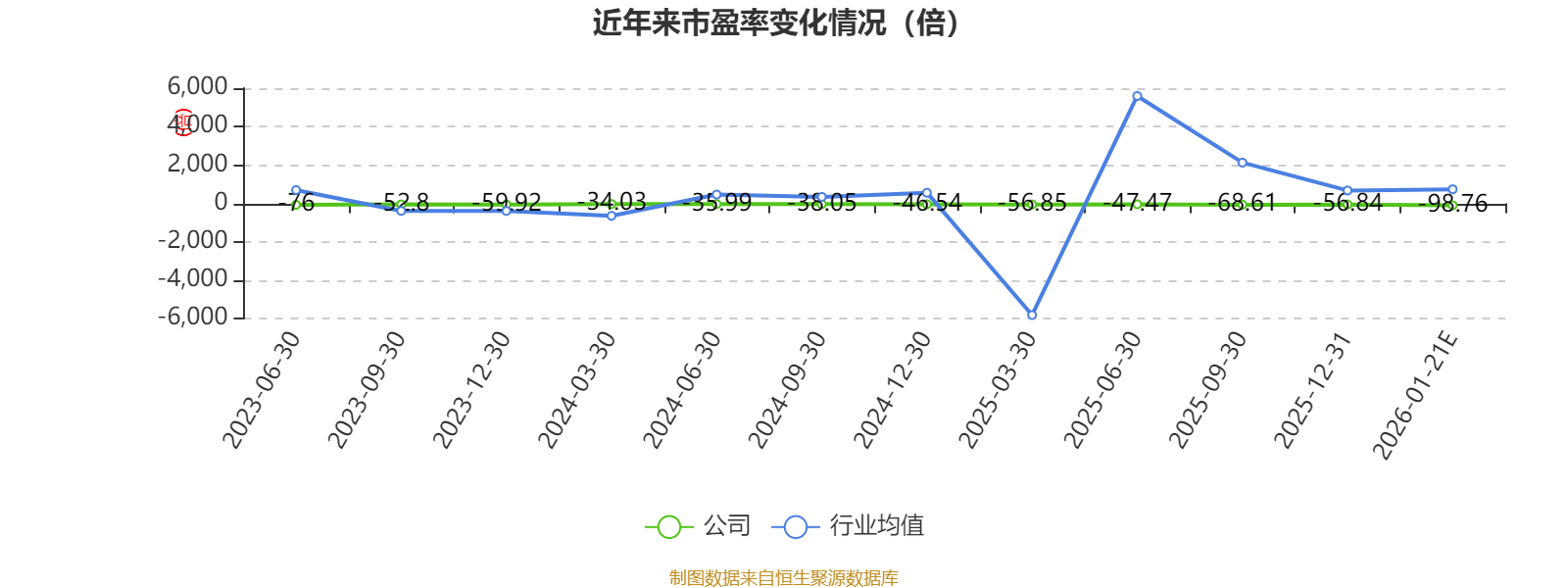 市盈率、市净率为负时,不显示当期分位数,会导致折线图中断。
