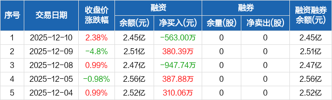 前沿生物:融资净偿还563万元,融资余额2.45亿元(12-10)