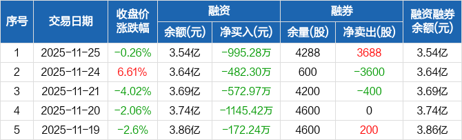 成都先导融资融券信息显示,2025年11月25日融资净偿还995.28万元;融资余额3.54亿元,较前一日下降2.74%