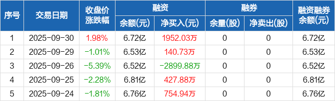 威腾电气:融资净买入1952.03万元,融资余额6.72亿元(09-30)