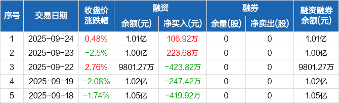 品高股份:融资净买入106.92万元,融资余额1.01亿元(09-24)
