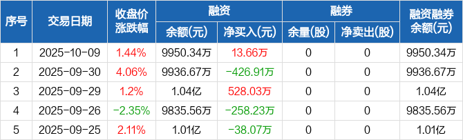 品高股份:融资净买入13.66万元,融资余额9950.34万元(10-09)