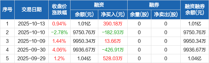 品高股份:融资净买入390.18万元,融资余额1.01亿元(10-13)