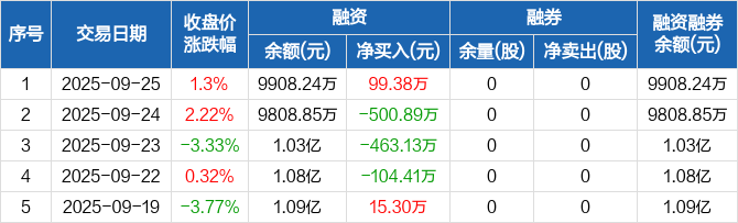 博睿数据:融资净买入99.38万元,融资余额9908.24万元(09-25)