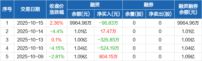 博睿数据:融资净偿还96.83万元,融资余额9964.96万元(10-15)