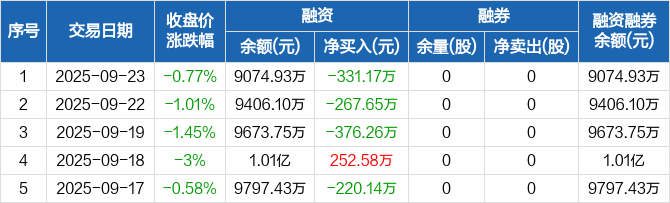 隆达股份:连续3日融资净偿还累计975.08万元(09-23)