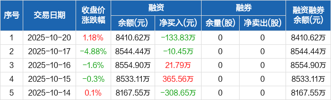 隆达股份:融资净偿还133.83万元,融资余额8410.62万元(10-20)
