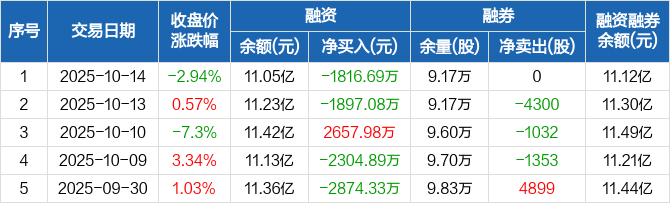 天岳先进:融资净偿还1816.69万元,融资余额11.05亿元(10-14)
