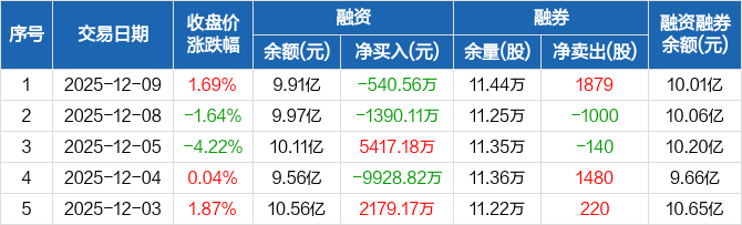 天岳先进:融资净偿还540.56万元,融资余额9.91亿元(12-09)