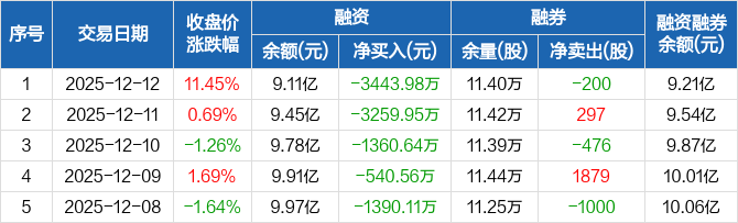 天岳先进:连续5日融资净偿还累计9995.23万元(12-12)