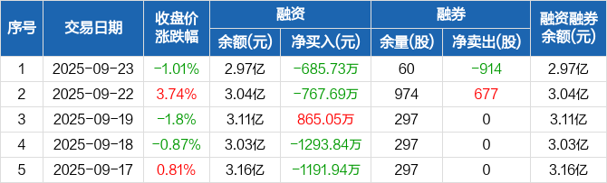 天德钰:融资净偿还685.73万元,融资余额2.97亿元(09-23)