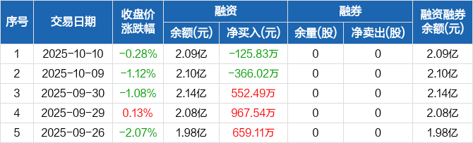 凯尔达:融资净偿还125.83万元,融资余额2.09亿元(10-10)