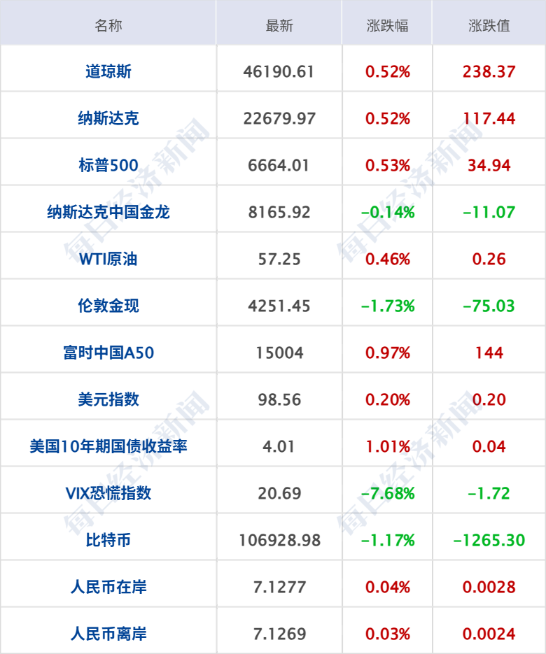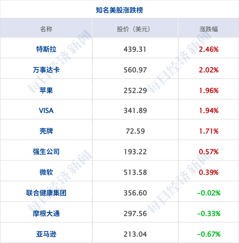 美股三大指数集体收涨,道指涨0.52%,本周累计上涨1.56%;纳指涨0.52%,本周累计上涨2.14%;标普500指数涨0.53%,本周累计上涨1.7%;热门科技股涨跌不一,特斯拉涨超2%,苹果涨近2%,甲骨文跌超6%,超微电脑、ARM跌超3%,博通跌超1%。纳斯达克中国金龙指数跌0.14%,本周累计上涨1.83%,中概股涨跌不一,新东方涨超2%,阿里巴巴、京东涨超1%,知乎、爱奇艺跌超1%,金山云跌超4%。